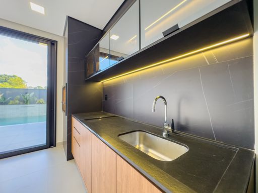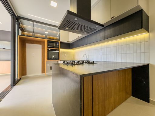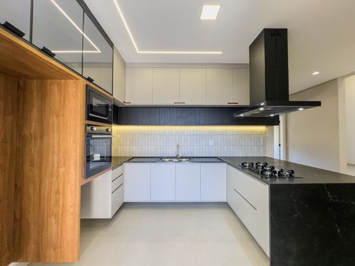 - Cozinha com cooktop, forno, micro-ondas e coifa;