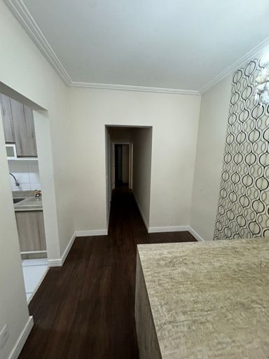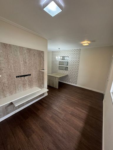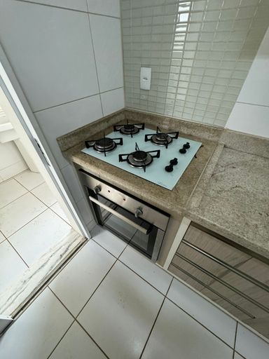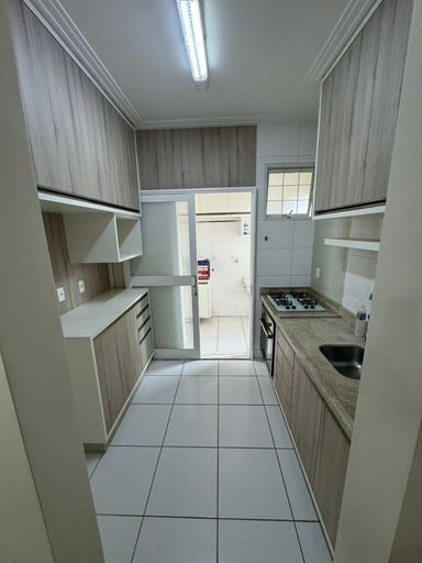 O imóvel possui piso em porcelanato, armários em todos os cômodos (banheiro, cozinha, dormitórios, escritório e sala) e ponto de ar-condicionado.